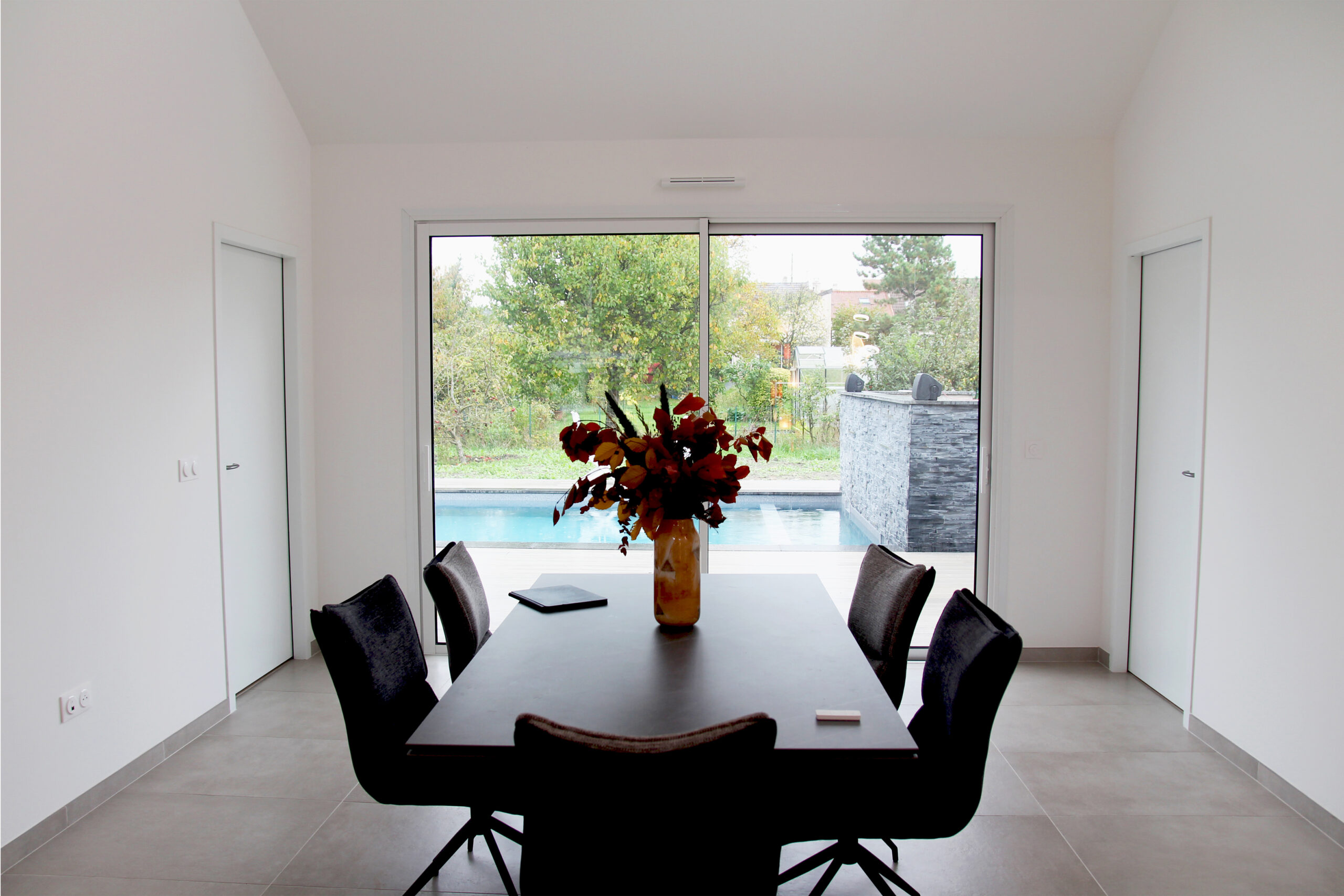 Trois fenêtres de toits sont prévues sur l’un des pans exposé Nord de la couverture pour compléter l’éclairement intérieur de l’habitation et favoriser une ventilation naturelle. Ses fenêtres seront de teinte gris clair.
