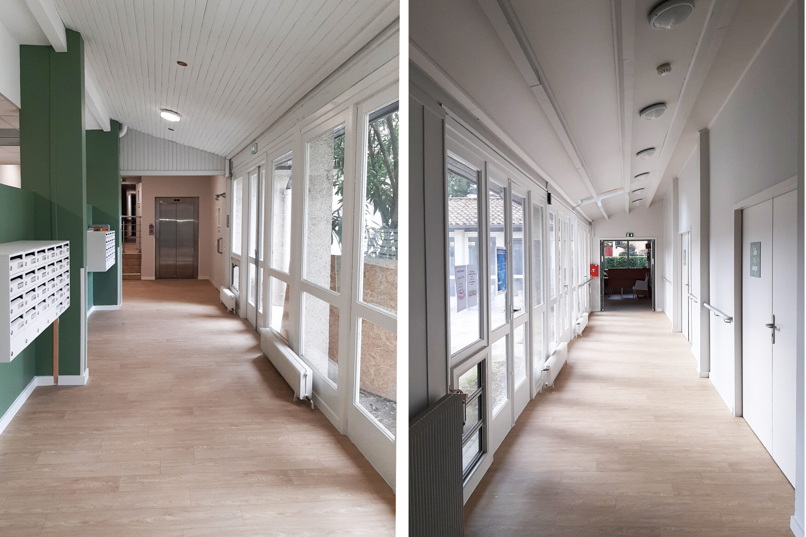 La réfection des circulations (murs, faux-plafonds et éclairage conforme) de tous les étages,